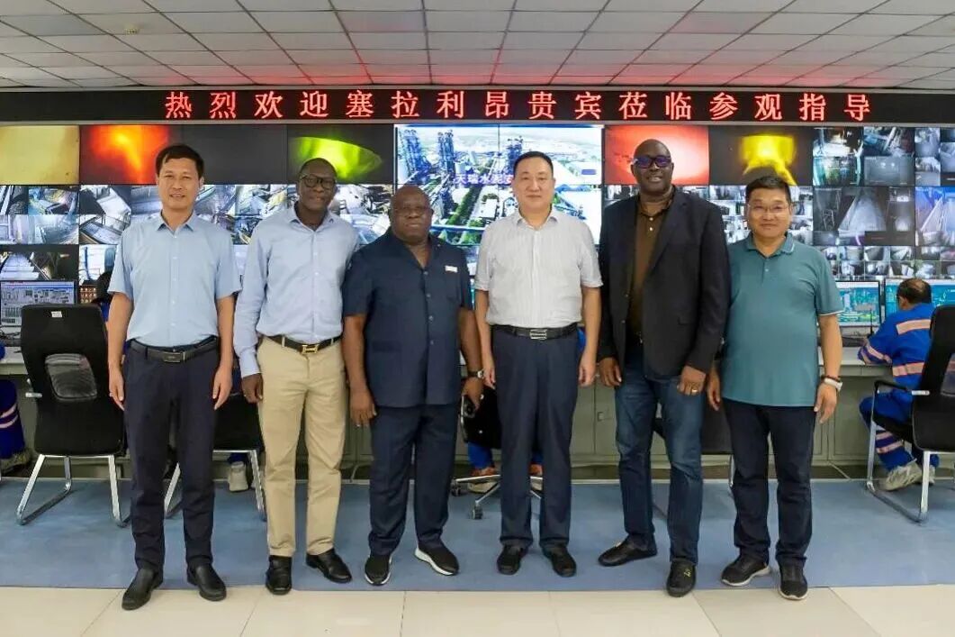 近日,塞拉利昂共和国贸易与工业部部长易卜拉欣·塞萨伊在驻华大使阿布·巴卡尔·卡里姆的陪同下,到大连天瑞水泥参观考察。天瑞水泥集团总经理丁基峰、市场部部长周海涛,大连天瑞水泥总经理高运红等陪同。