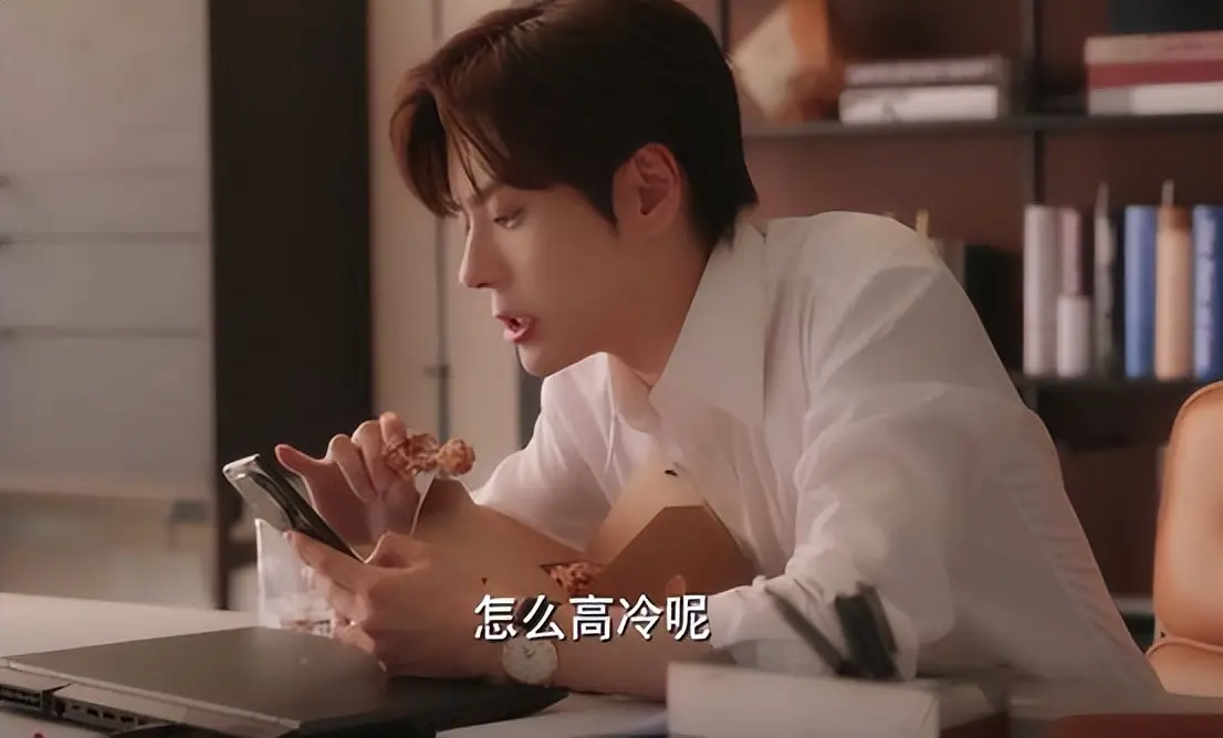 卸掉不苟言笑的工作状态后,咬着炸鸡,为难又困惑的思考怎么装高冷,反倒是一副大男孩的模样。